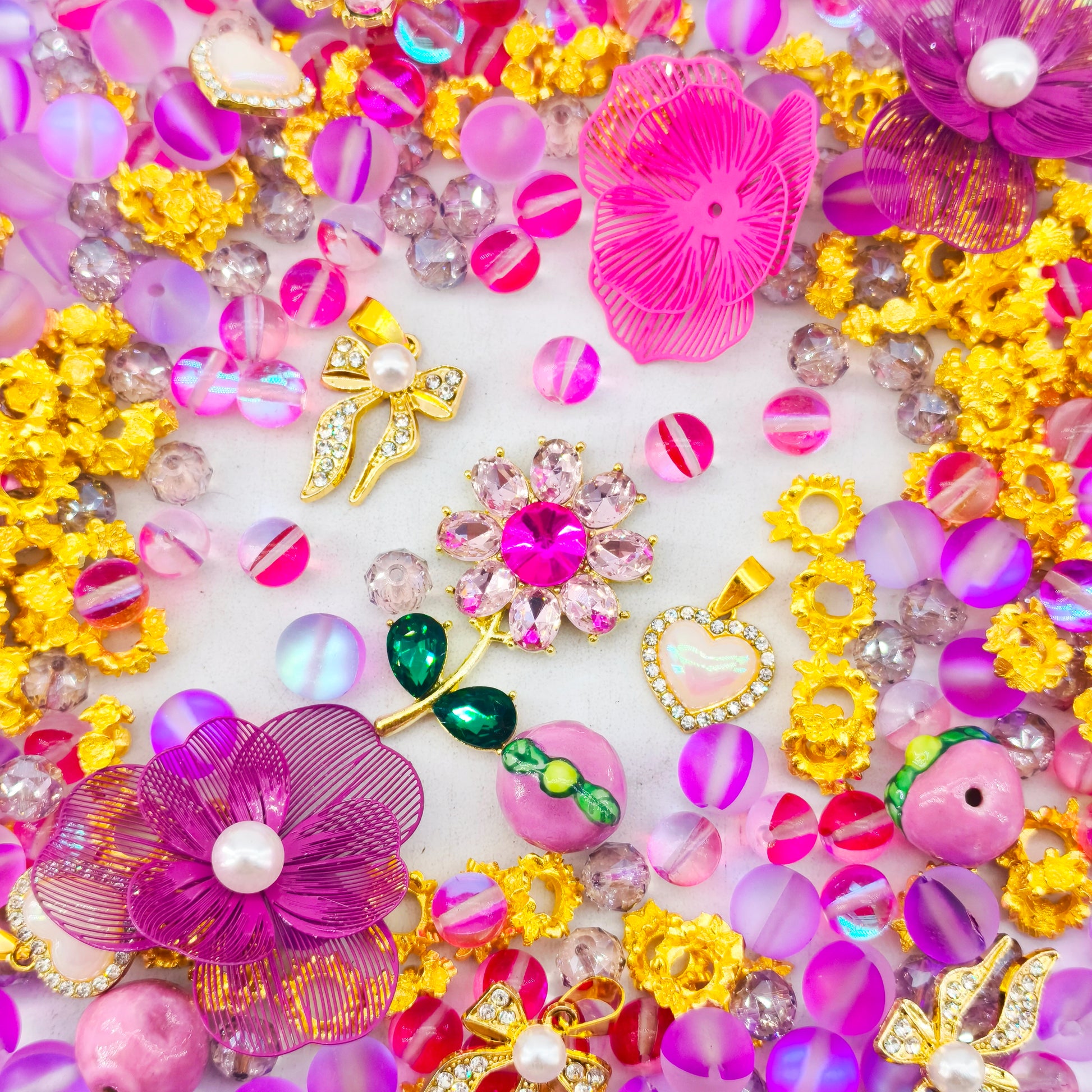 This collection is for the bold trendsetters who want their DIY pieces to carry the weight of a Parisian Runway legacy and a high-voltage, sun-drenched glow. From the vibrant fuchsia lusters to the intricate wire-mesh textures, every charm is a work of art that catches the light like a luxury boutique find in a hidden Milanese atelier. Whether you’re crafting a fierce "Neon-Gala" statement necklace or some edgy, flower-inspired chandelier earrings, these charms ensure your style is always iconic and unapologetically powerful in its radiant grace. Handmade happiness, one charm at a time.