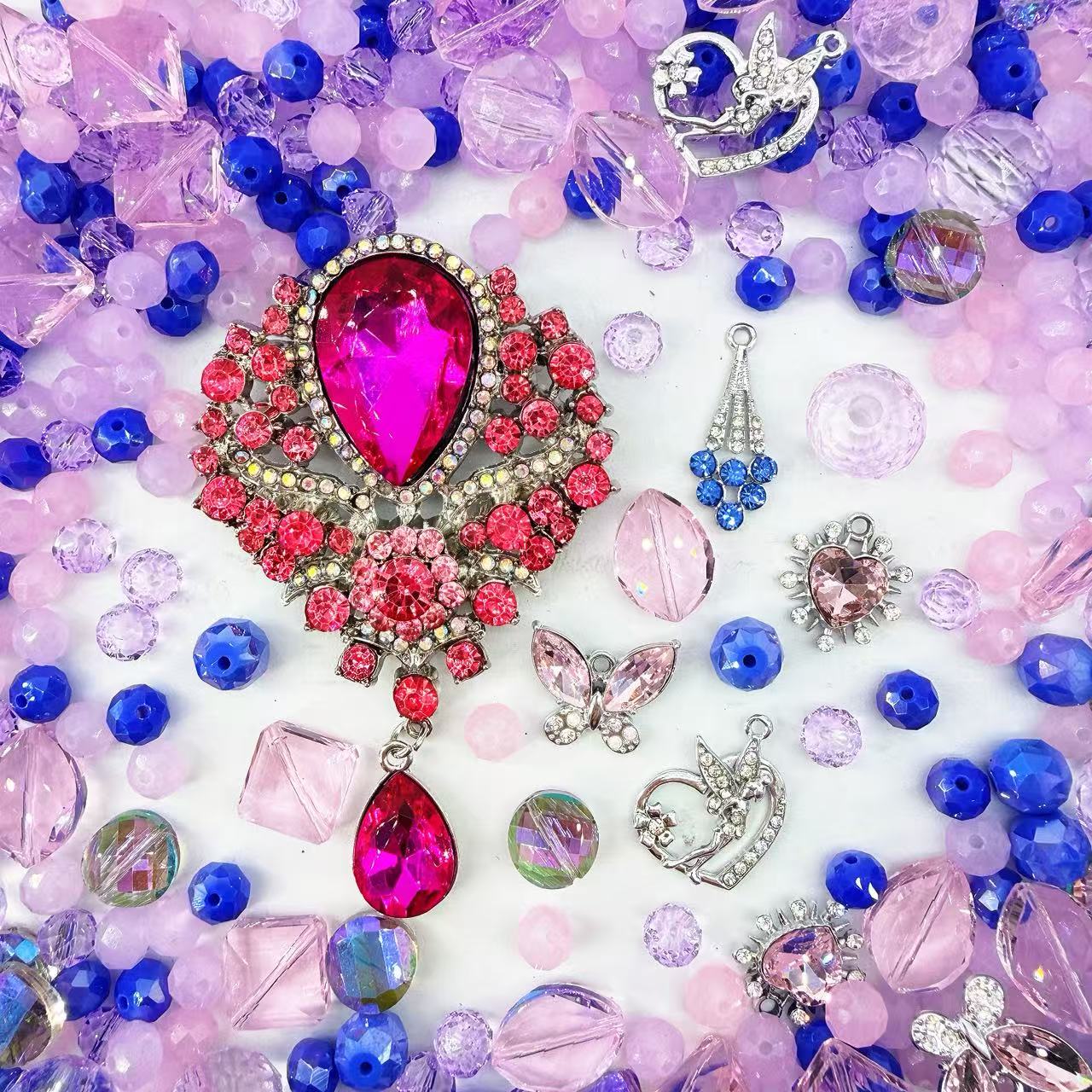 Hey fashion visionaries! 🍬💖 Ready to channel literal "Malibu Dreamhouse" energy with a high-fashion twist? Our Bubblegum Doll mix is the ultimate definition of Vogue High-Fashion Storytelling, featuring a breathtaking Couture Baroque Fuchsia Medallion that radiates intense editorial brilliance with its striking pear-cut focal and shimmering silver armor textures. We’ve curated a majestic hoard of Crystal-encrusted Butterflies, shimmering Silver Silhouette Fairies, and architectural Azure Chandelier shards designed for that legendary, front-page-worthy look! 💎🏰🎀