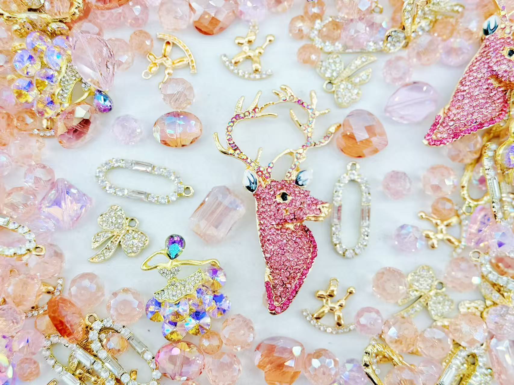 Hey fashion visionaries! 🦌💖 Ready to skip into literal "Sugar-plum Fantasy" energy? Our Pink Deer mix is the ultimate definition of Vogue High-Fashion Whimsicality, featuring a breathtaking Couture Pink-Crystal Pavé Stag centerpiece that radiates intense editorial brilliance with its striking rose-gradient brilliance and golden antler detailing. We’ve curated a majestic hoard of Iridescent Ballerinas, shimmering Emerald-cut Crystal frames, and architectural Pavé-set Bow relics designed for that legendary, front-page-worthy look! 💎🎀 Swan-like elegance meets forest magic.