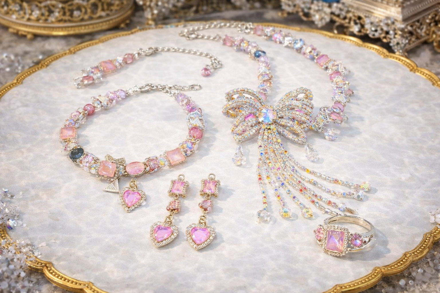 Hey fashion visionaries! 🐆✨ Ready to embark on a literal "Tropical Dreamscape" journey? Our Jungle Adventure mix is the ultimate definition of Vogue High-Fashion Storytelling, featuring a breathtaking Couture Aurora Floral Medallion that radiates intense editorial brilliance with its striking spectral center and shimmering crystalline tassels. We’ve curated a majestic hoard of Pink-Opal Swan relics, shimmering Fuchsia-Peach Prismatic tiles, and architectural Pavé-set Prismatic hearts designed for that legendary, front-page-worthy look! 💎🌿🔥