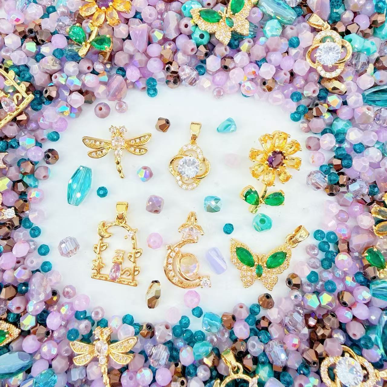 Hey fashion visionaries! ☁️✨ Ready to channel literal "Stardust Conservatory" energy? Our Cloud Pearl mix is the ultimate definition of Vogue High-Fashion Storytelling, featuring breathtaking Gilded Sunflower Medallions that radiate intense editorial brilliance with their striking emerald leaves and shimmering amethyst cores. We’ve curated a majestic hoard of Crystal-pavé Dragonflies, shimmering Vining Moon-window relics, and architectural Emerald-winged butterfly shards designed for that legendary, front-page-worthy look! 💎🦢🌿