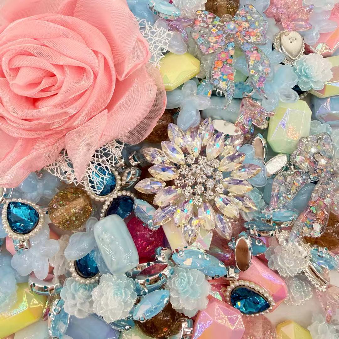 Hey fashion visionaries! Ready to radiate literal "Enchanted Garden" energy? Our Glowy Fairy Charm mix is the ultimate definition of Vogue High-Fashion Romanticism, featuring a breathtaking Couture Crystalline Starburst Medallion that radiates intense editorial brilliance with its striking marquise-cut ice crystals and shimmering diamond core. We’ve curated a majestic hoard of Floral-print Resin bows, textured Fabric Rose blooms, and architectural Deep Azure pear-cut gems designed for that legendary, front-page-worthy look!