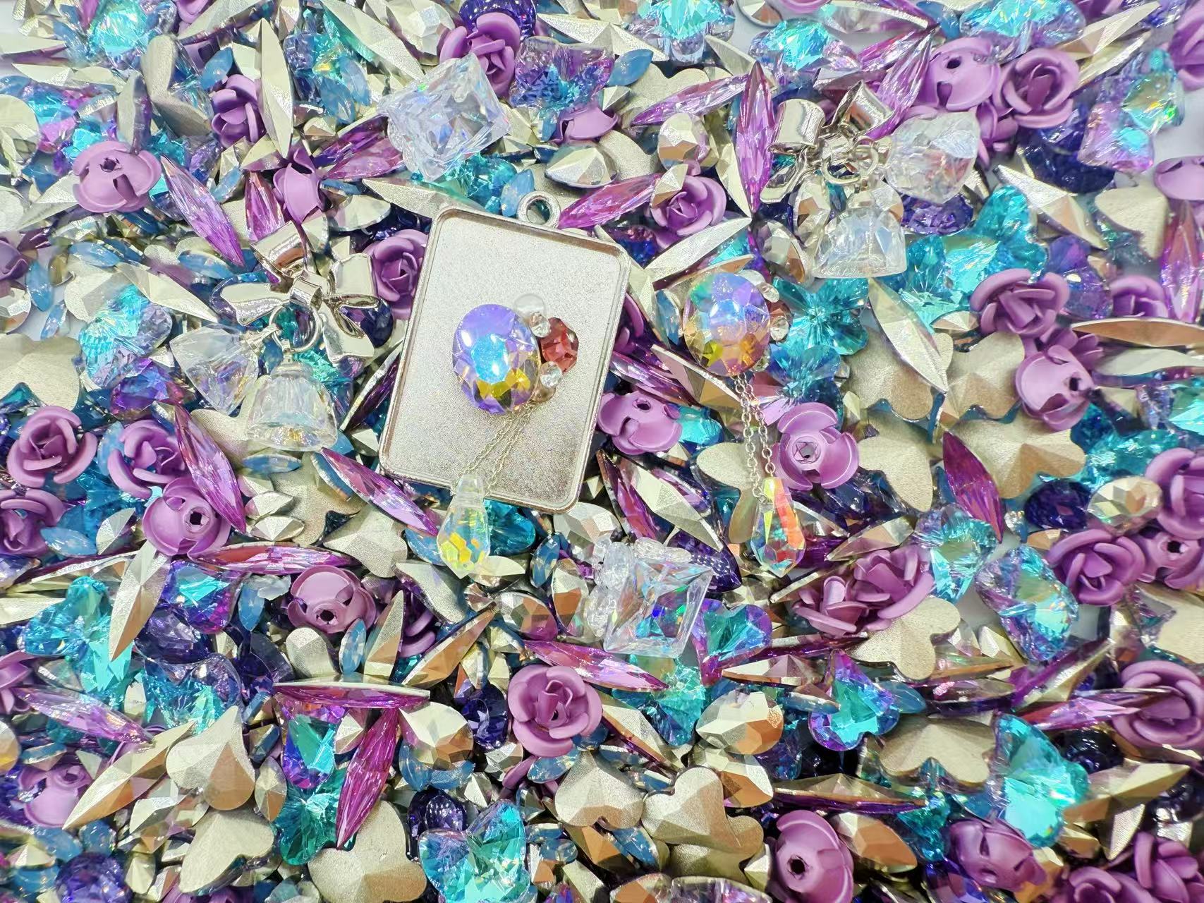 Each charm tells its own story—crystal butterflies, radiant teardrops, bold geometric shapes, and delicate roses come together to create a kaleidoscope of sparkle. The play between soft lilac tones and vivid electric blues gives this collection its name: a perfect balance of elegance and edge. 💎🌸
