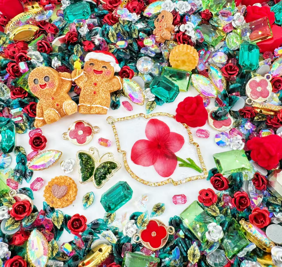 Bring the magic of the holidays to your creations with Xmas Sparks — a vibrant vintage mix inspired by Christmas joy and cozy elegance. Each charm glows with festive energy, from glittery greens and ruby reds to golden accents that shimmer like lights on a tree. The gingerbread cuties and rose motifs add a charming twist that’s both nostalgic and chic.