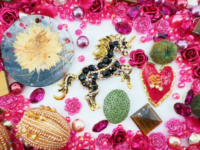 Step into a world of bold glamour and royal charm with My Queen. This mix combines deep ruby pinks, golden accents, and powerful statement charms, from the dazzling unicorn centerpiece to romantic roses and heart-shaped pendants. It radiates an energy of strength and elegance, perfect for creations that demand to stand out.