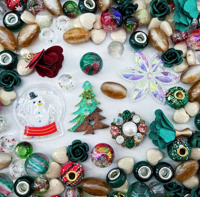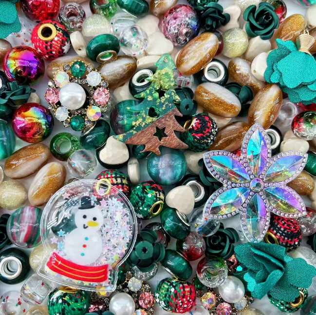 “Last Christmas” is a festive dream brought to life 🎄✨. This mix features holiday-inspired charms like a sparkling snowman globe, a glittery Christmas tree, and a crystal flower star, all surrounded by deep emerald greens, ruby reds, and shimmering golden tones. Delicate details like roses, pearls, and tassels add a touch of chic elegance to the cozy holiday spirit.