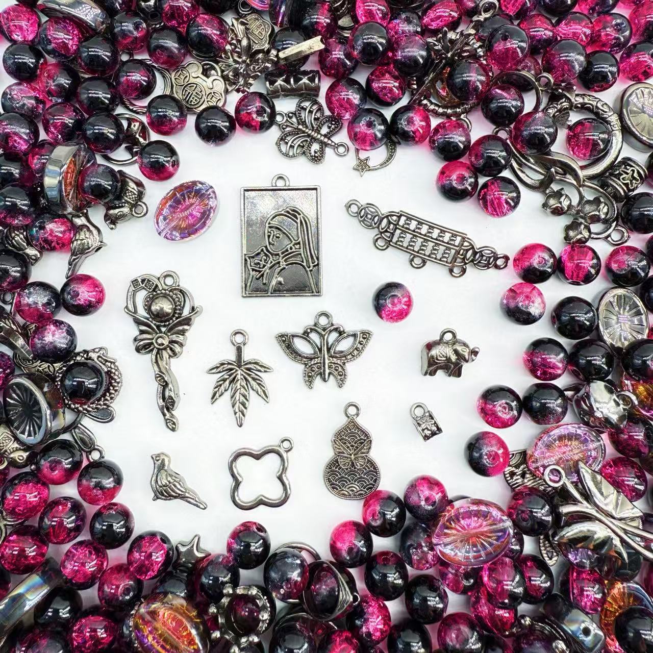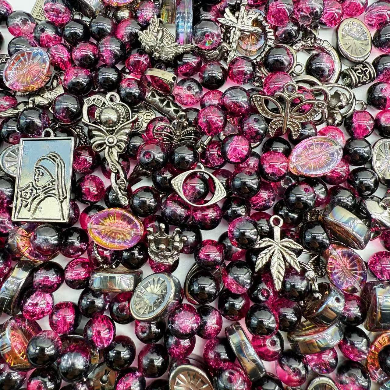 Every charm in this mix feels like a relic from a gothic fairytale—refined, powerful, and a little dangerous. The contrast of black and magenta adds an enchanting, almost magical glow that turns your creations into wearable art 🌙.