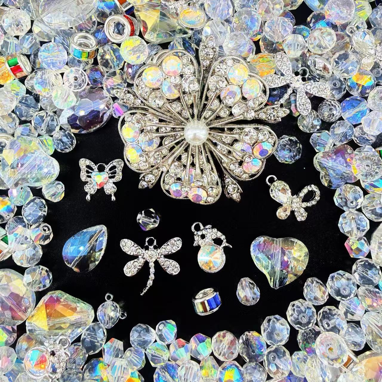 Hey besties! 🌙 Ready to manifest some major magic? Our Moonlight Dream collection is a total mood, featuring a massive, jaw-dropping silver flower wheel centerpiece encrusted with Aurora Borealis crystals and a glowing center pearl. We’ve curated a treasure trove of shimmering dragonflies, delicate crystal butterflies, and heart-shaped moonstones that catch every single ray of light like a dream. The palette is a breathtaking symphony of iridescent diamonds and icy silver, designed to make your DIY jewelry feel like a precious heirloom found in a vintage moonlit garden! 💎✨