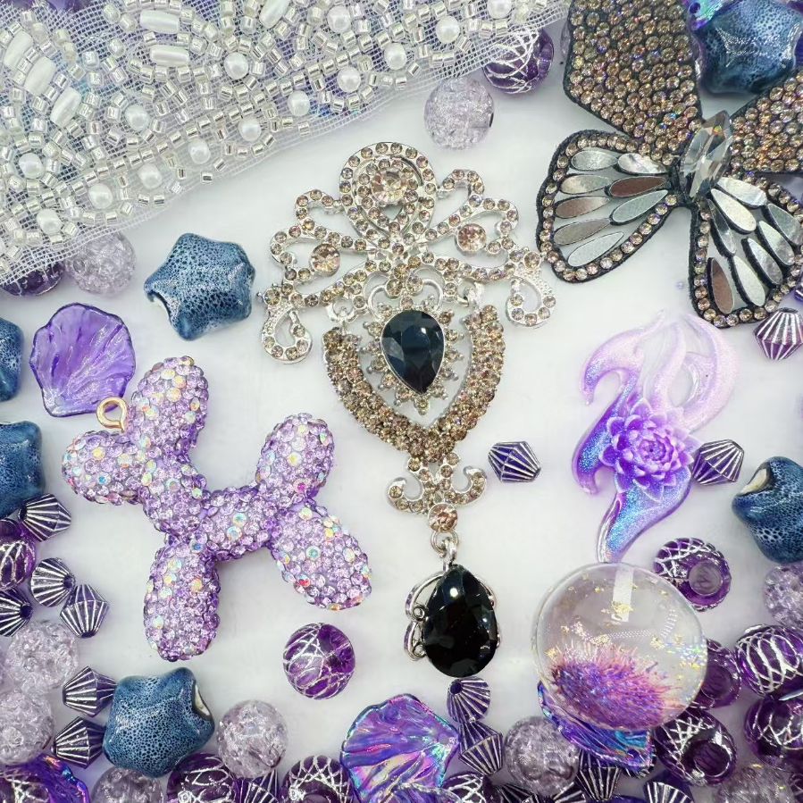 Let the vintage-style pendant and glittery orbs set the stage for necklaces, keychains, or statement charms that speak of moonlit gardens and mysterious nights. Each bead tells a story — from delicate lace details to sculpted stars — perfect for crafters who adore a touch of drama in their DIY magic. 🌌
