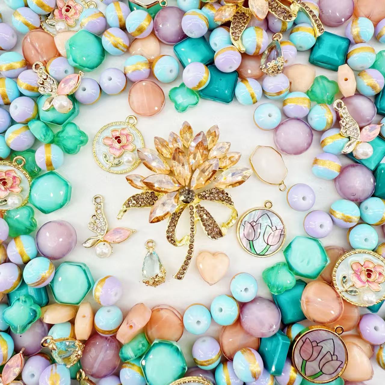 Step into a pastel dream with Lilac Love, a delicate blend of lavender hues, peach tones, and shimmering aqua. 💕✨ This mix captures the tender warmth of spring mornings — where every flower blooms with a whisper of magic. From crystal butterflies and blooming lotus charms to hand-painted floral pendants, each piece radiates a calm yet radiant charm that feels like a love letter from nature itself. 🌷🦋