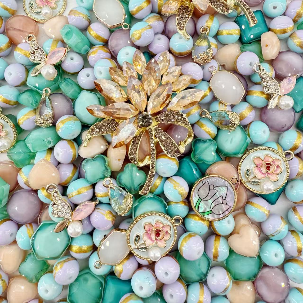 The soft color palette of lilac, mint, and coral gold gives this mix a graceful, almost ethereal glow — perfect for dreamy DIY jewelry or art pieces that express elegance and serenity. 💫🌿