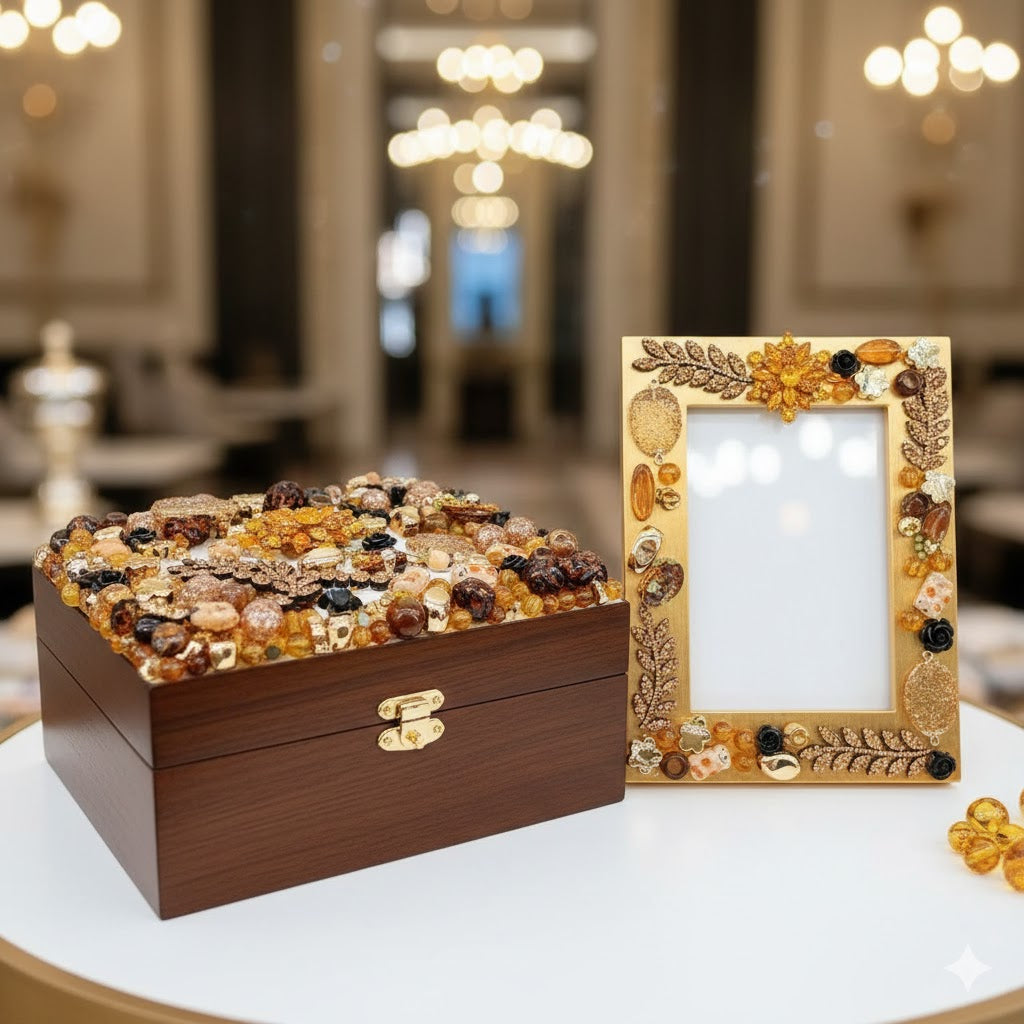 Toast to the finer things in life. 🥂✨ Introducing Champagne Glow—a couture manifesto curated for the muse who radiates warmth and sophistication. We’ve captured the effervescent magic of a sunset soiree, blending rich amber hues, vintage tortoiseshell patterns, and the deep luxury of cognac diamonds. At the heart of this collection shines our breathtaking sunburst amber crystal brooch, a beacon of golden-hour glamour, accompanied by chic noir roses and gilded foliage branches that whisper of timeless elegance. It’s giving 'Old Money Aesthetic' meets 'Vintage Vogue'—the ultimate fashion-forward palette for your most luxurious masterpiece yet. 🍂🥃🕶️