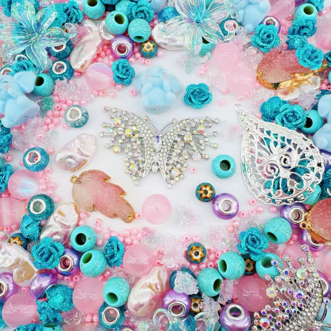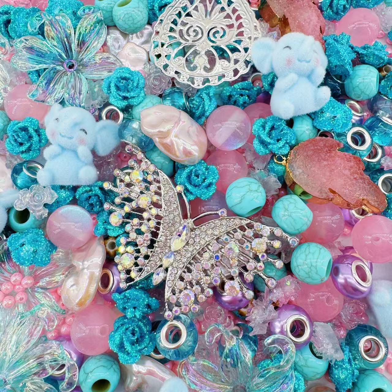 Meet Santa Baby, a dreamy wonderland of shimmer and joy 💖✨. This mix combines sparkling crystals, pastel beads, and butterfly wings that glisten like snowflakes under holiday lights. Shades of icy blue, soft pink, and glittery silver capture that sweet, magical moment between winter dreams and Christmas cheer.