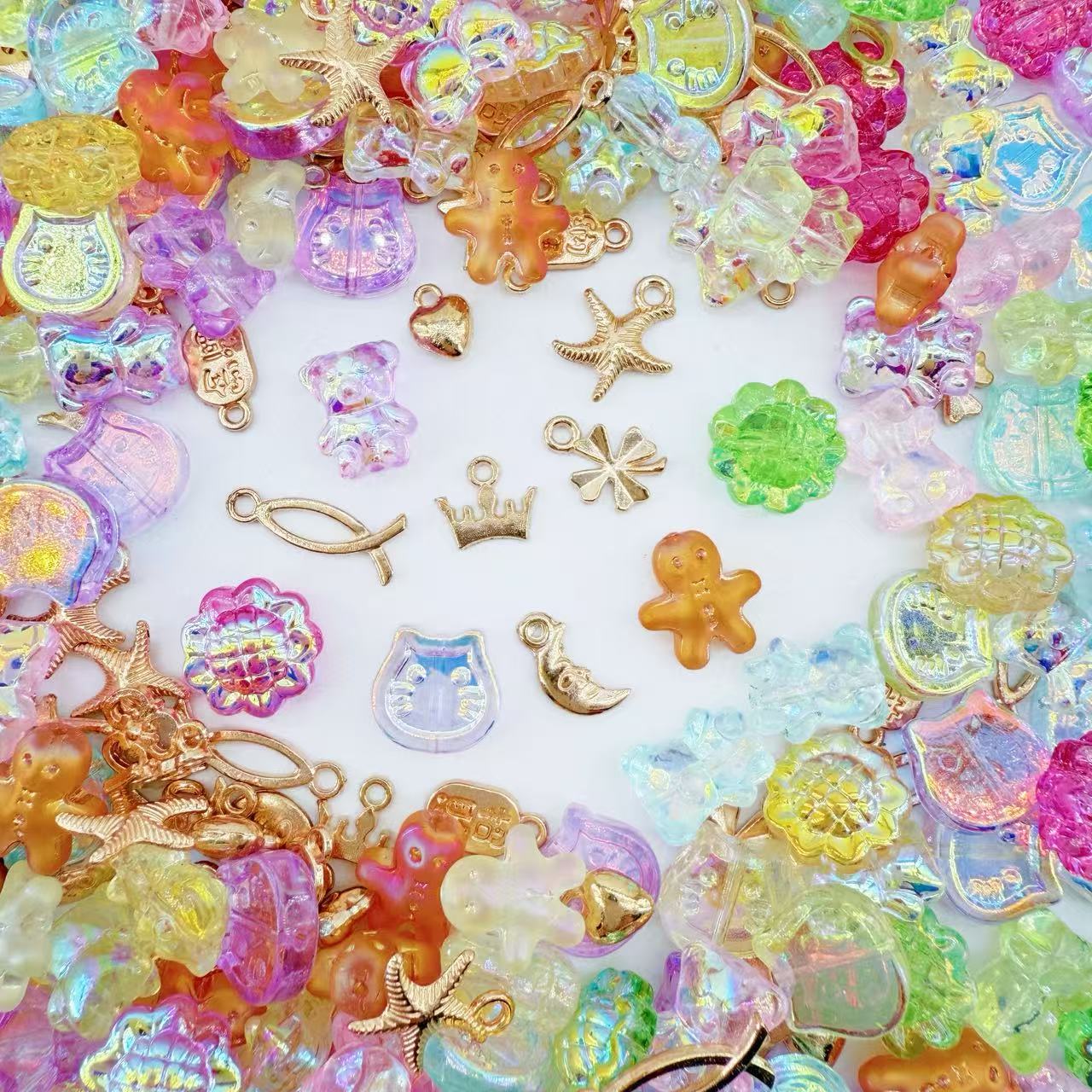From translucent candy charms to golden accents that shimmer like morning light, this mix is pure happiness in bead form! Each charm invites you to create pieces that sparkle with playfulness and warmth — perfect for bracelets, keychains, or any DIY project that needs a little pop of joy. ✨
